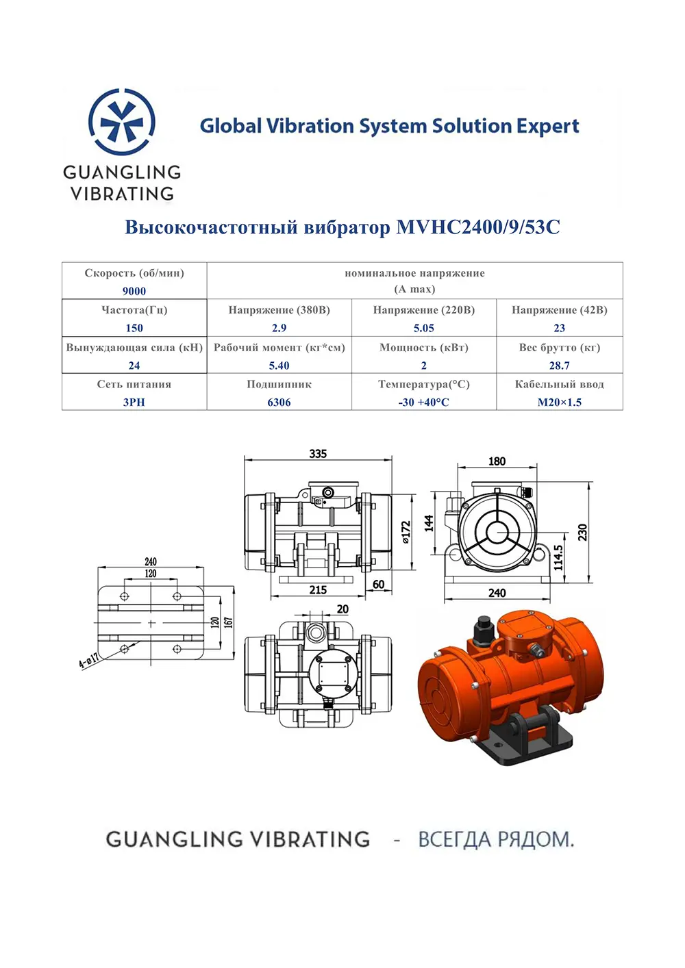 Вибродвигатели серии MVHC предназначены для работы в оборудовании, требующем высокочастотной вибрации, например: